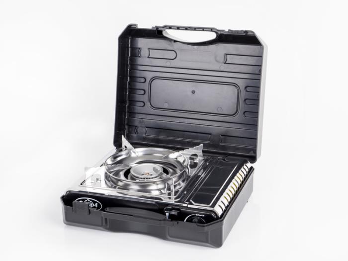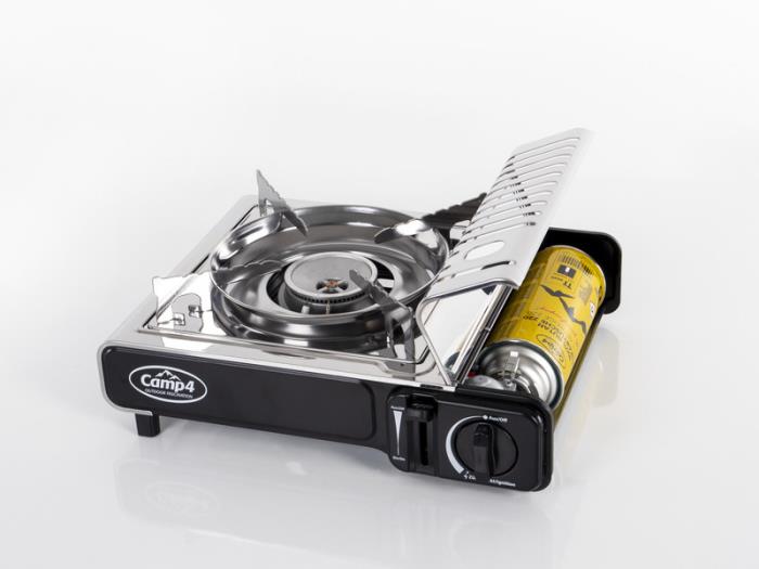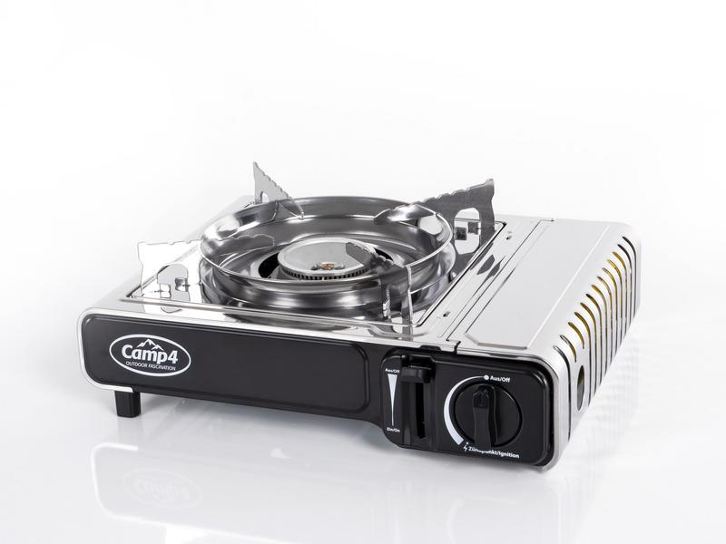 Camp4 Gourmet-patronköket kännetecknas av sin höga prestanda och lilla packstorlek. Det drivs av en bajonettpatron. Lågan kan justeras steglöst. Det har en tändsäkring och en piezotändning. Gourmetköket av hög kvalitet har en yta i rostfritt stål och levereras i en praktisk och smidig plastväska, allt med en vikt på endast ca 1,8 kg.