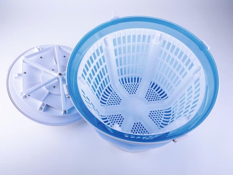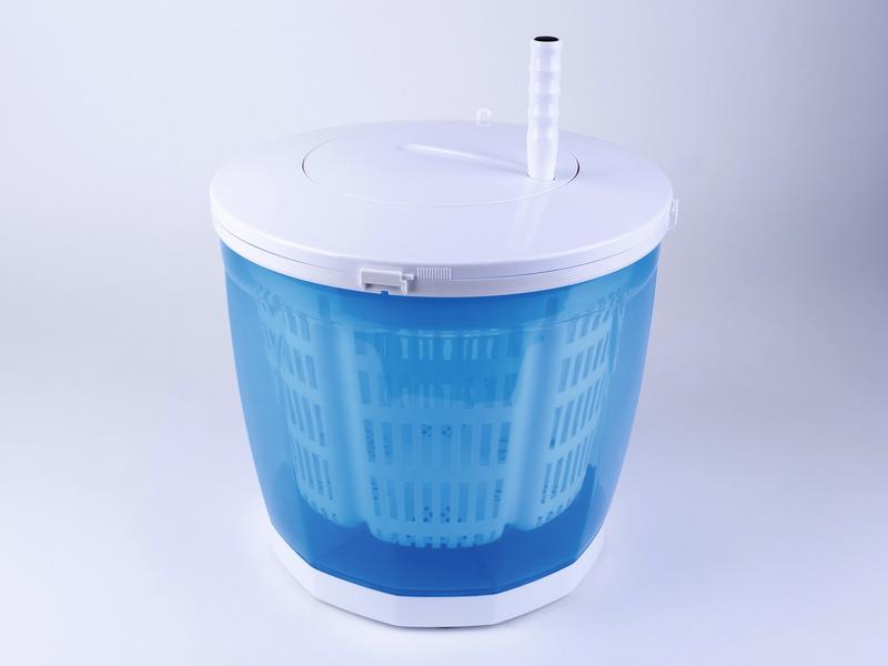 Liten praktisk manuell tvättmaskin med centrifugeringsfunktion.