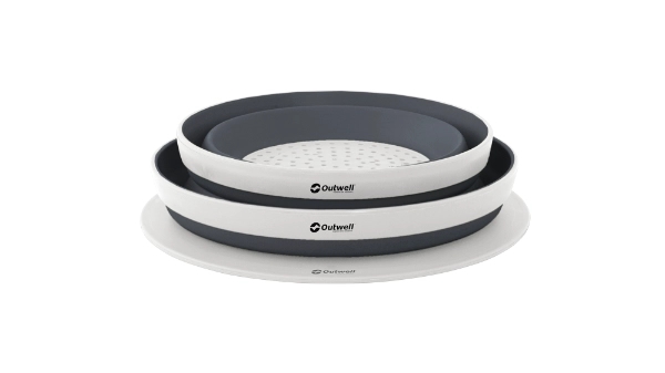 • Sammenklappelig skål inkl. låg og si, kan pakkes sammen