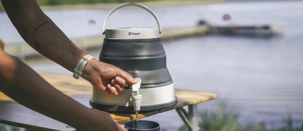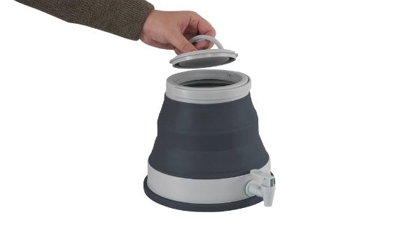 Collaps vattenbehållaren är tillverkad av slagtålig TPE och plast. Den är utrustad med en användarvänlig tappfunktion och ett robust handtag för transport. Den hopfällbara designen ger en kompakt packstorlek, som expanderar för att rymma 6 liter. Det breda kvartsvridningsskruvlocket gör det enkelt att fylla och rengöra behållaren.