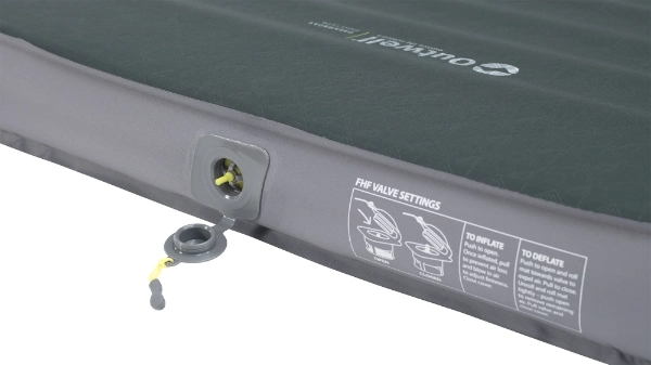 Dreamboat-kollektionens enkla och dubbla modeller i olika tjocklekar är utrustade med en Outwell® FHF (Flat High-Flow) ventil, som ökar luftflödet vid både uppblåsning och tömning. De vertikala statiska tygpanelerna på sidan böjs inte under tryck, vilket bidrar till enkel uppblåsning eftersom mindre luft behöver pumpas in i madrassen.