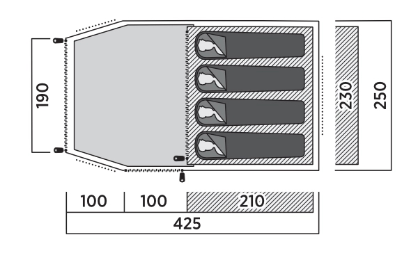 Hemsedal 4 är ett tunneltält designat för maximal komfort och bekvämlighet. Det rymliga främre facket ger plats för förvaring, medan ventilation fram och bak säkerställer frisk luft. SleepTight innertältet ger en bekväm sömn, även på morgonen och kvällen. Med flexibla främre och sidoingångar och en avtagbar botten är den idealisk för cykel- och motorcykelturer, så att du kan anpassa tältet efter dina behov och äventyr.