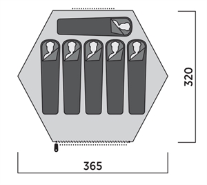 • Stor ytterdörr gör det enkelt att ta sig in och ut ur tältet