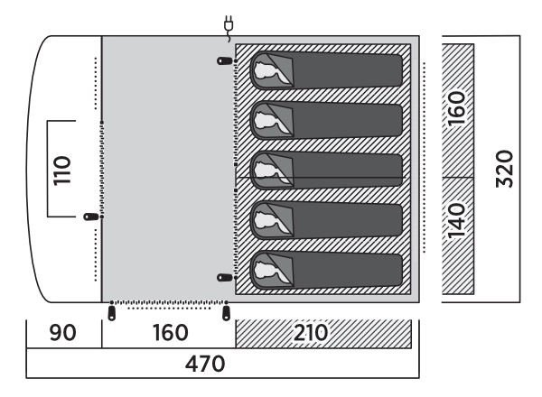 Skarvan 5 är det perfekta familjetältet för både korta och långa campingturer. Det rymliga vardagsrummet ger utrymme för avkoppling, medan den regnsäkra främre ingången säkerställer torr tillgång i alla väder. De avdelade sovrummen skapar avskildhet och kan enkelt tas bort och innertältet SleepTight med mörkare material och optimal ventilation ger en behaglig sömn. Tältet har en insydd botten som håller drag och insekter ute, samt en flexibel sidoingång med en hel. nätdörr för extra komfort. Med organisationsfickor, fönster med infällbara gardiner och tillgång till ström är Skarvan 5 en praktisk och bekväm bas för familjen.