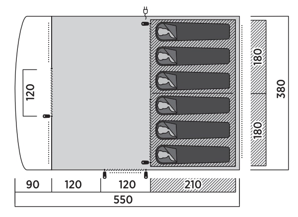 Skarvan 6 är ett rymligt och funktionellt familjetält, perfekt för oförglömliga campingäventyr. Den har ett stort vardagsrum, en regntät framentré och delade sovrum som kan tas bort vid behov. SleepTight innertältet, designat med mörkare material och optimal ventilation, säkerställer en god natts sömn. Den insydda botten håller drag och insekter ute, medan organisationsfickor och tillgång till kraft ökar bekvämligheten. Med en flexibel sidoingång, helmaskad dörr och fönster med infällbara gardiner och meshpaneler ger Skarvan 6 utmärkt ventilation och komfort på alla åkturer.