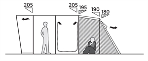 • Fönster i fram- och sidorna av tältet med fasta gardiner