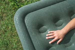 Denna suveräna madrass är konstruerad med en fast kant, som förbättrar stabiliteten. Det slitstarka PVC-materialet är täckt med mjuk velour, som ger en enastående komfort. De övriga detaljerna inkluderar dubbelventil och transportväska.