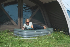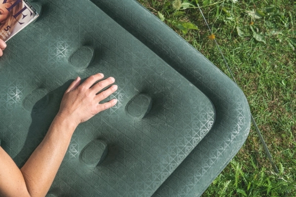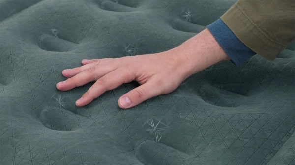 Denna suveräna madrass är konstruerad med en fast kant, som förbättrar stabiliteten. Det slitstarka PVC-materialet är täckt med mjuk velour, som ger en enastående komfort. De övriga detaljerna inkluderar dubbelventil och transportväska.