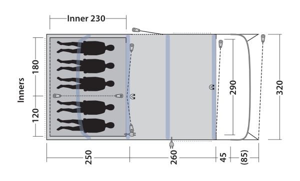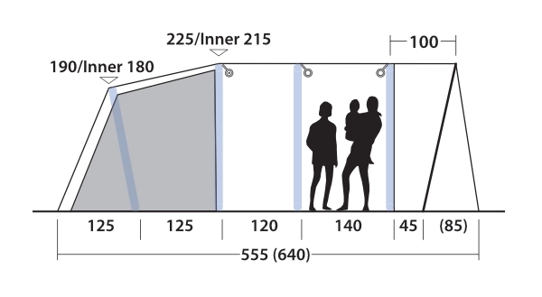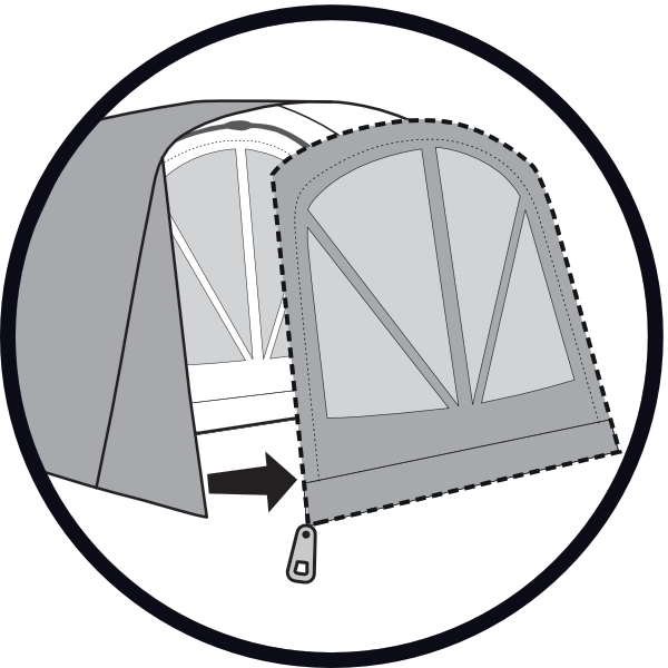 • Tält med Dual Front - kan användas som ett tre-zons tält eller med öppen front med soltak