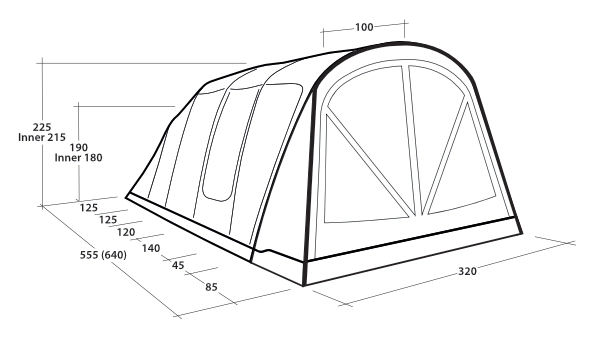 • Formade luftstänger säkerställer bra ståhöjd och rymlighet i tältet