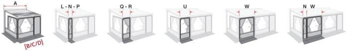 Förlängningsinställning inställd för att justera bredden på förtältets sidosektioner (435301/435302 Privacy Room med markislängd på 350 cm, för grundmodell Typ 310 XL och 434037/434038 Fiamma ).