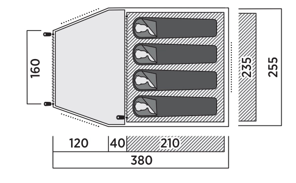 Kinn 4 är ett kupoltält med en frontingång som leder till ett rymligt förtält som kan användas som förvaringsutrymme. SleepTight-innertältet, designat med mörkare material och optimal ventilation, säkerställer en behaglig sömn på morgonen och tidigt på kvällen. Fönster på båda sidor med uppdragbara gardiner ger ljus och avskildhet, medan den avtagbara badkarsbotten kan tas bort för att minska vikt och packstorlek. Detta gör Kinn 4 till ett mångsidigt och praktiskt val, särskilt för cykel- och motorcykeläventyr.