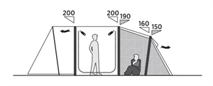 • Formade luftstänger säkerställer bra ståhöjd och rymlighet i tältet