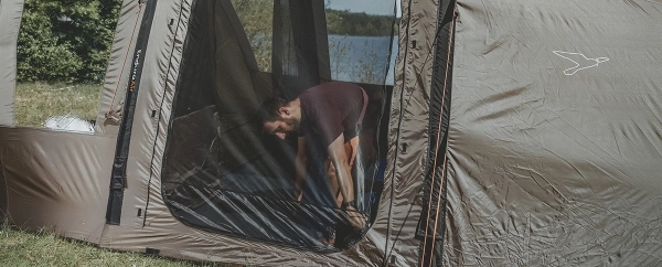 • Stor sidoinngång med dörr i myggnät för flexibel användning