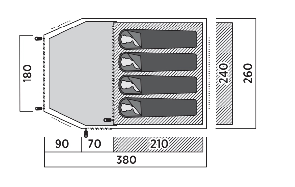 Lomsdal 4 är ett mångsidigt kupolformat tält med ett utökat förvaringsområde och två ingångsdörrar för extra bekvämlighet. Tältet har en stor veranda med avtagbar botten, vilket gör det enkelt att sätta upp och underhålla. SleepTight-innertältet blockerar ljus och säkerställer en lugn sömn – perfekt för morgnar och tidiga kvällar. Perfekt för att få ut det mesta av varje utomhusäventyr.