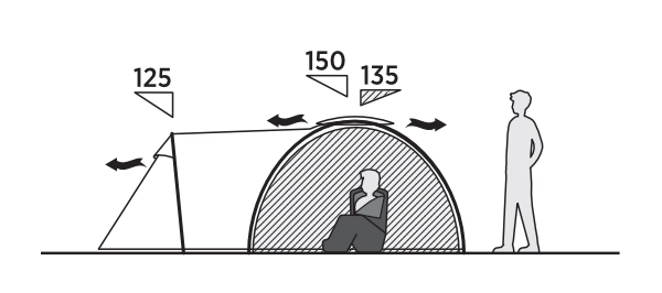 • Kupolformat tält med utökat tunnelförvaringsområde