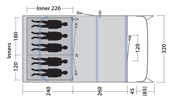 • Formade luftstänger säkerställer bra ståhöjd och rymd i tältet