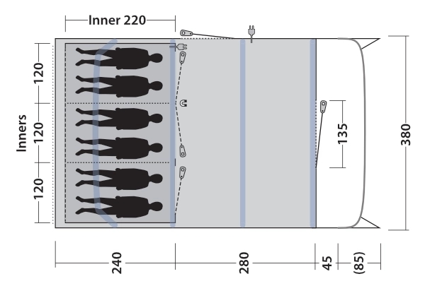 • Formade luftstänger säkerställer bra ståhöjd och rymd i tältet