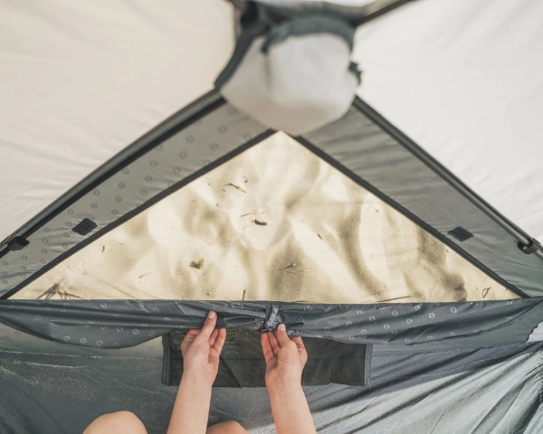 Njut av dagar på stranden med vårt lätta att sätta upp strandtält tack vare Rapid-pitch Lite-systemet, där presenningen och stolparna är sammankopplade. Förlängningen av tältbasen fungerar även som en praktisk "dörr" för extra skydd. För extra stabilitet kan hörnpåsarna fyllas med sand. Meshfickor ger praktisk förvaring för små föremål, medan stora ventilationspaneler säkerställer optimalt luftflöde. Dessutom innehåller tältet pinnar för säker montering på löst underlag.