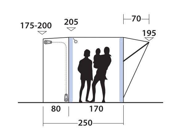 Den kompakta, uppblåsbara husbilen Outwell Santa Monica Air är idealisk för par, små familjer, vänner och solocampare. Det ger flexibelt extra boendeutrymme och möjlighet till sovmöjligheter på campingen. Flexibel åtkomst erbjuds via sidodörrar på båda sidor av Link Access Zone, som kopplar tältet till din husbil, samt en lätthanterlig J-dörr framtill, täckt av en praktisk kapell. Insektsnät bakom ytterdörren ger enkel och snabb ventilation. När du ger dig ut på äventyr kan tältet lämnas fristående på din plats, redo att välkomna dig hem när du kommer tillbaka.