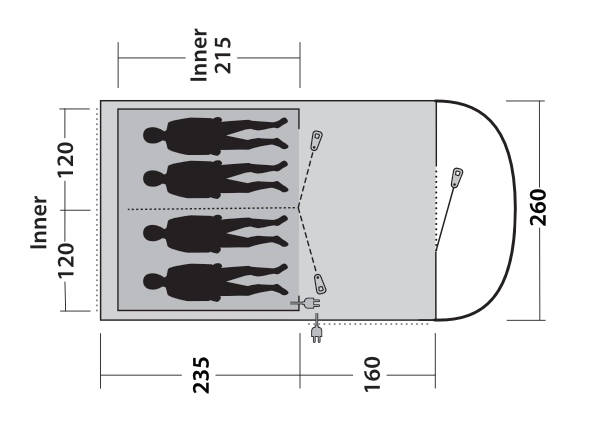 • Nätfickor i innertälten ser till att mindre föremål förvaras säkert och finns nära till hands