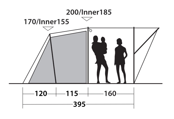 Typ av tält Tunneltält med tre rum
