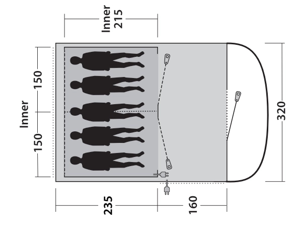 • Nätfickor i innertälten ser till att mindre föremål förvaras säkert och finns nära till hands