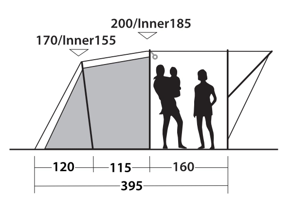 Typ av tält Tunneltält med tre rum