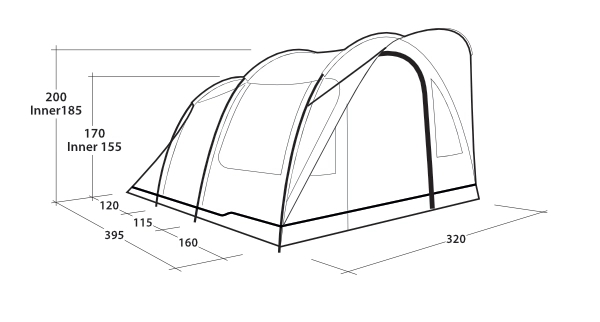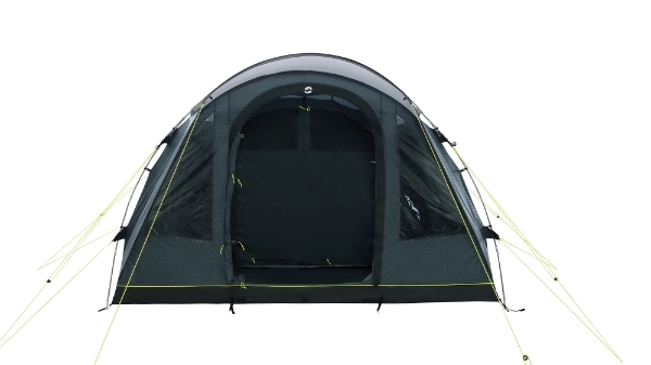 Outwell Sky 5 tunneltält med stavar ger gott om utrymme och komfort för familjer. Den har två mörka sovrum som rymmer upp till fem personer, vilket garanterar en god natts sömn. För optimal komfort har tältet justerbar ventilation baktill och en låg ventil under fönstret. Den användarvänliga J-dörren utrustad med nät bidrar till tältets bekvämlighet.