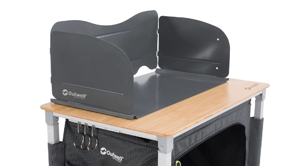 Outwell Heat Diffusion Plate & Windshield skyddar dina köksytor från värme och säkerställer att du kan laga mat utan oro. Det slitstarka stålet och praktiska utloppen för gasledningen gör den enkel att använda. I blåsigt väder säkerställer det säker och effektiv matlagning, så att du kan fokusera på att njuta av din matlagning.
