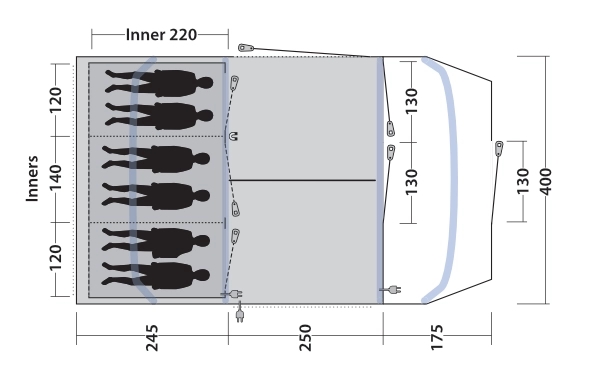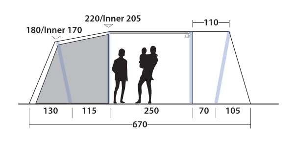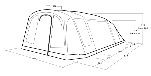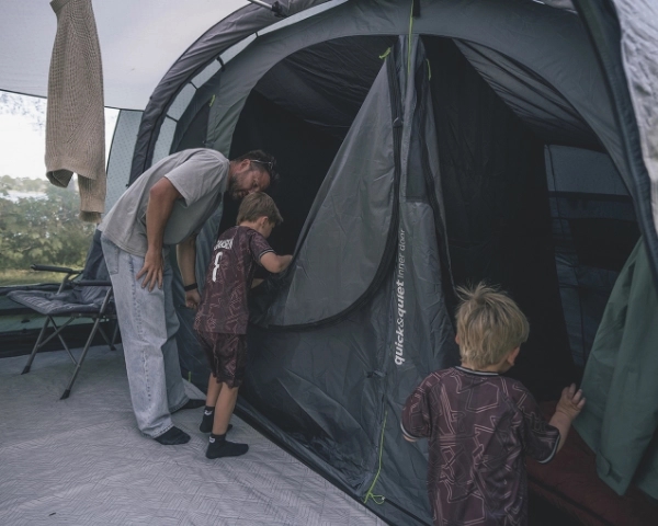 Outwell Sacramento 6 Air erbjuder en rymlig och bekväm campingupplevelse för familjer på upp till sex personer. Det är snabbt att sätta upp med en optimerad design som håller vikten och den packade storleken nere. Skapa ditt idealiska utrymme med flexibla alternativ. Rulla undan dörren och fönstren för bättre utsikt, och öppna den innersta dörren två tredjedelar för att utöka vardagsrummet. De tre sovrummen med Dark Inners säkerställer en avkopplande nattsömn. En perfekt balans mellan komfort och funktionalitet för din campingresa.