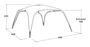 Outwell Wakefield Shelter XL är en robust, stabil design med enkel åtkomst och ståhöjd, som erbjuder mångsidig fristående utomhustäckning och har en mängd olika användningsområden. Apex-ventilation och en central lyktstropp plus nätfickor ökar dess flexibilitet och användningsmöjligheter. Dess silverbelagda, PU-säkrade polyestertyg har en vattenpelare på 1500 mm. För att få ett större skydd kan en ränna ansluta kompatibla design.