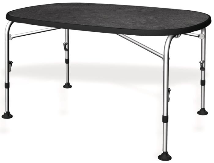 Ett camping- eller trädgårdsbord med format. 4 höjdjusterbara fötter är lätta att hantera med hjälp av en excentrisk låsning. Hög stabilitet av bordet och en mycket lättanvänd excentrisk låsning av benen och dess breda plattfötter är idealiska även för mjuka ytor. Materialram: aluminium.